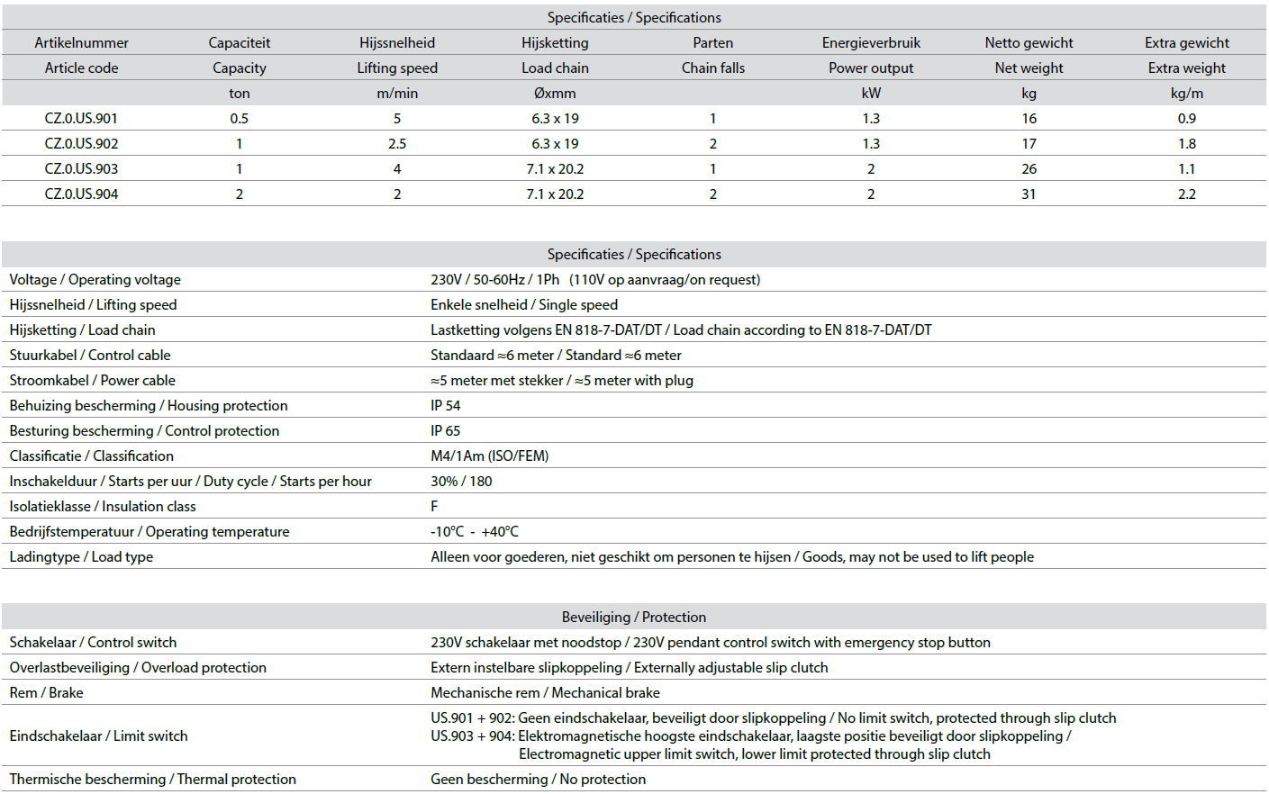 » Standard lifting heights: 3 m, 6 m, 10 m