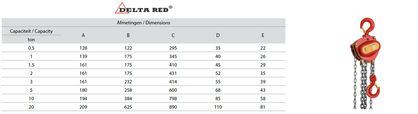 Model : Delta Red Kapasite : 500kg , 1 ton , 1,5 ton , 2 ton , 3 ton , 5 ton , 10 ton , 20 ton Kaldırma Yüksekliği : 3m , 6m , 10m standart (Farklı yükseklikler mevcuttur)